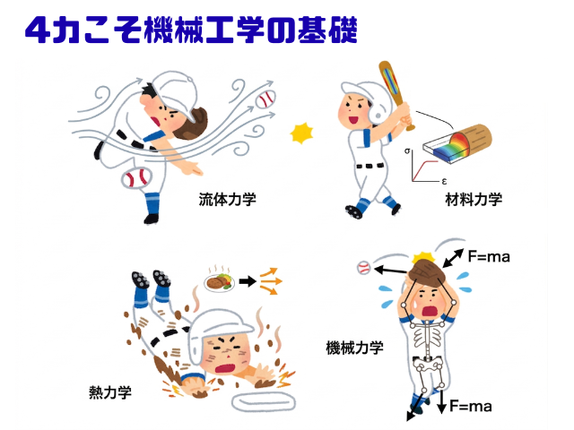 大学の機械工学科に入ると、まずこの4つをみっちり叩き込まれます。逆に言えば、この4力を押さえていれば機械工学の基礎体力があるということなのです。