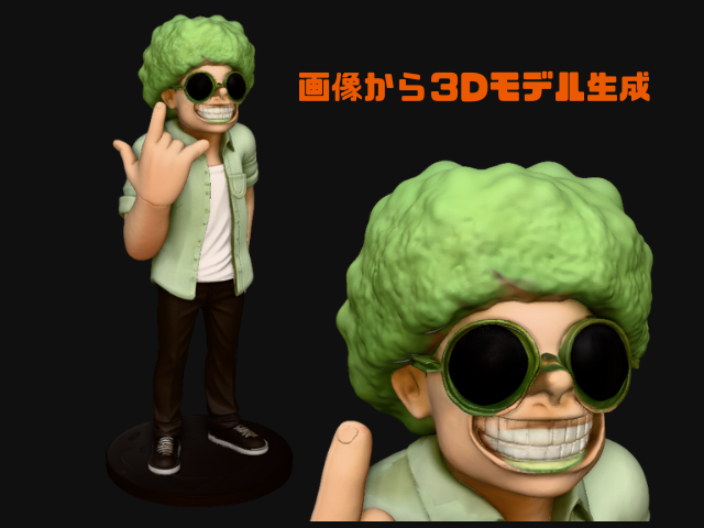 これは本当に画像を入れるだけなので簡単ですね。破綻なく出来ております。ただ、腕がデカい。kickbackの米津玄師を彷彿とさせるような太さです。努力 未来 a beautiful 3D。顔もよく見ると夢に出てきそうだけど、かなり精巧にモデリングされております。ハッピーで埋め尽くしてくれそう。
