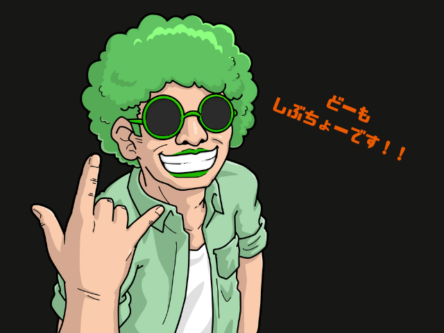 自分のアイコンです。長年私が使い続けている緑アフロのしぶちょーアイコンを元に、こいつを現実世界に召還していきます。
